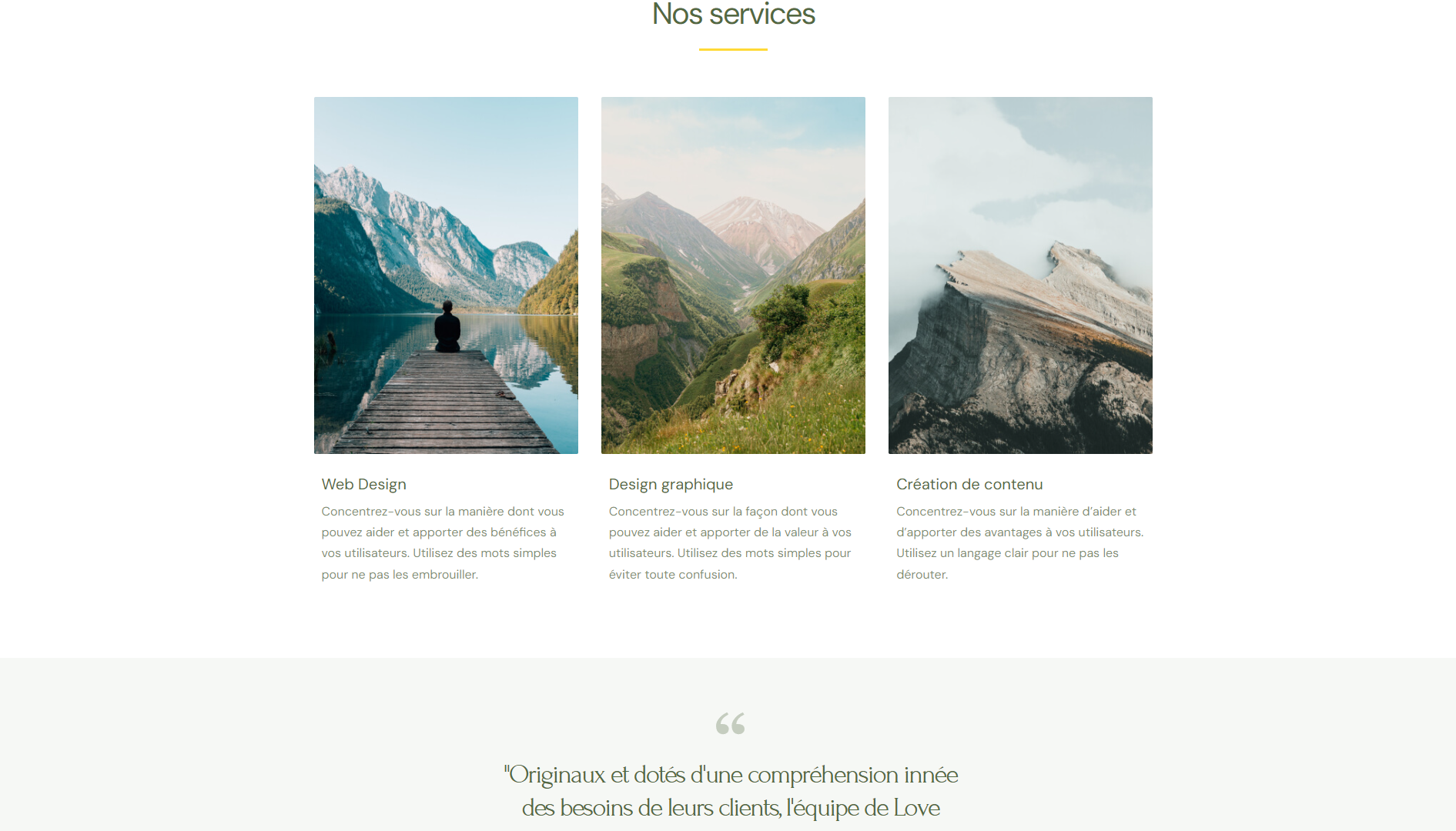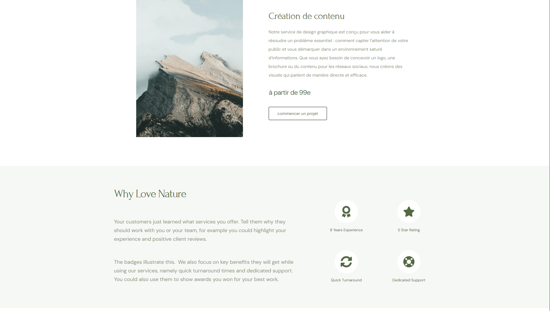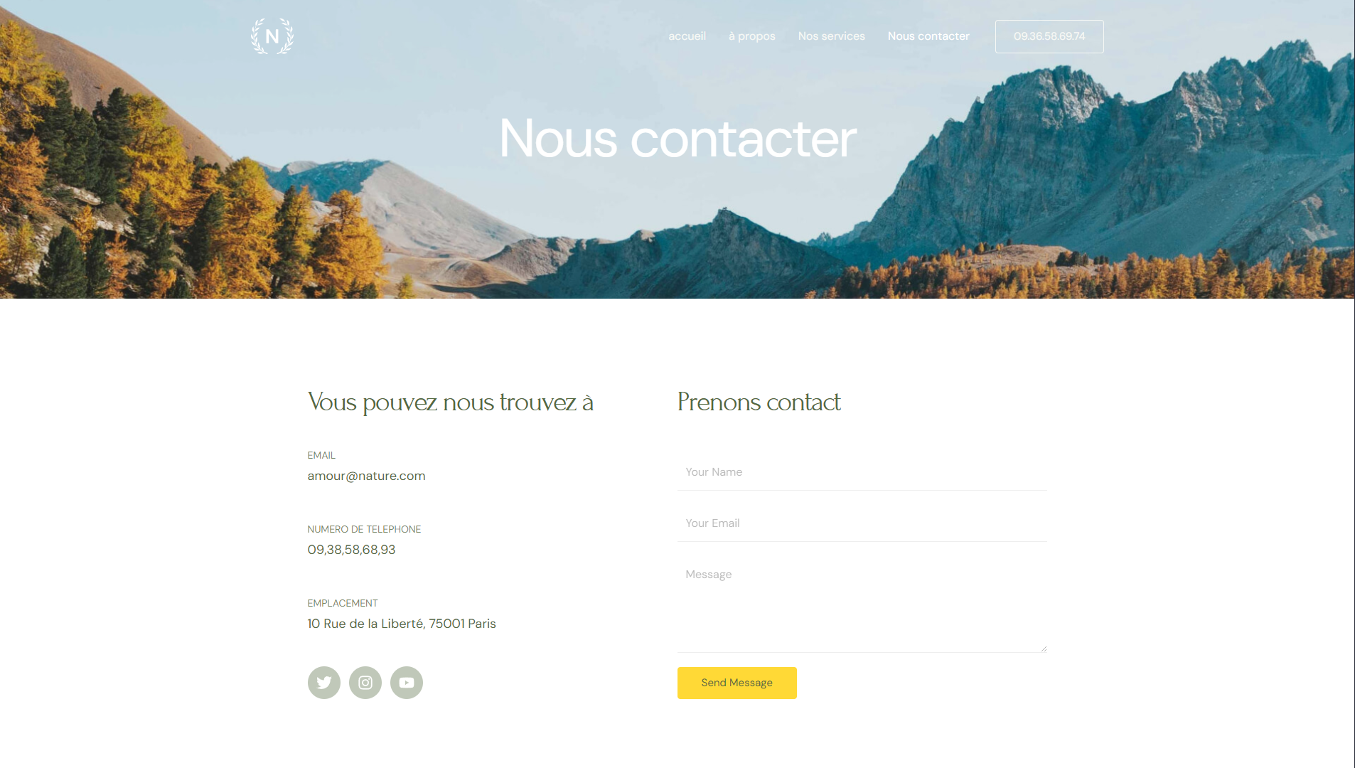 Ce site catalogue, conçu pour mettre en valeur la beauté de la nature, illustre mes compétences en web design. Avec une interface épurée et une navigation fluide, il présente de manière esthétique des produits et services liés à l’environnement. Chaque élément a été pensé pour offrir une expérience visuelle agréable tout en reflétant l’harmonie entre technologie et nature, montrant ainsi ma capacité à créer des designs à la fois modernes et respectueux de l’environnement.